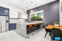 - 2.7m high stackable doors open to a resort-style covered alfresco area, complete with gas, lighting, and power outlets - overlooking your sparkling saltwater swimming pool